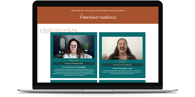 Hear what our Visionaries and Rainmakers alike have to say about going through our program.