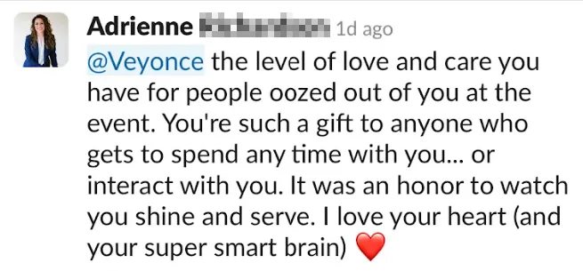 “She has a gift of seeing into things and understanding how the system needs to fit together that requires intense empathy and intuition along with super focused organization. She’s like the Good Will Hunting of organizations.”