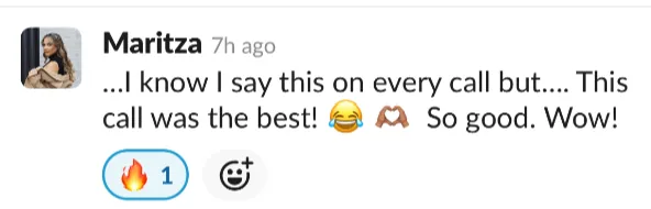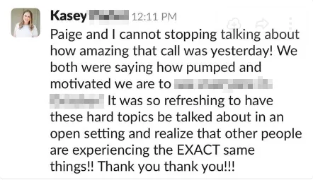 “You have compassion and “oh I’ve been there. I feel you.” AND let’s go! Leadership. Content wise. Gets to the point. What is NEEDED. I understand it. I don’t feel overwhelmed. Even if it’s unknown or new, the feeling of being seen, heard and supported is sprinkled everywhere.”